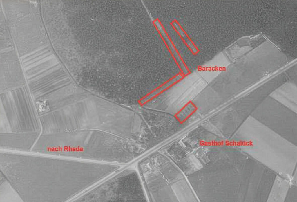 In der Luftaufnahme der Alliierten vom Gebiet um Haus Schalück sind die Stellen markiert, an denen sich seinerzeit Einrichtungen der Deutschen Luftwaffe befanden. Foto: US-Nationalarchiv