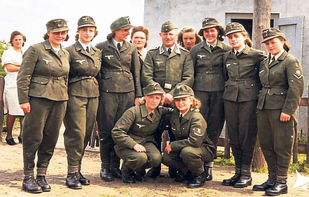 Behielten den Himmel über St. Vit im Auge: Die Luftwaffenhelferinnen der örtlichen Flugwache mit ihrem Truppführer, dem späteren Wiedenbrücker Schützenoberst Reinhard Mönchmeier. Die Aufnahme stammt aus dem Jahr 1943. Foto: Stadtarchiv Gütersloh