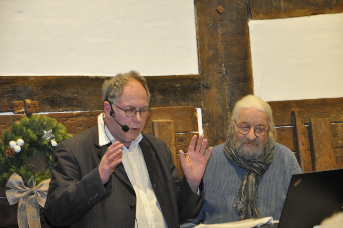 Hinzu käme, so Ellermann, dass auch wenig bekannte oder historisch beleuchtete Aspekte aus der NS-Geschichte stets auf großes Interesse stießen. In seinem gut einstündigen VHS-Vortrag vermittelte Ellermann nicht nur reichlich Daten, Zahlen und Fakten rund um den Sender „Primadonna“ und den im Haus Schalück am Kriegsende untergebrachten Stab und Gefechtsstand der 3. Jagddivision der Deutschen Luftwaffe. Er präsentierte seinen Zuhörern auch mehrere Augenzeugenberichte jener Zeit und außerdem so noch nicht gesehene Fotoaufnahmen. Die ursprünglich schwarz-weißen Bilder waren zum Teil mit Hilfe von künstlicher Intelligenz nachkoloriert worden. Wertvolle Hilfe und Unterstützung erhalten hatte Ellermann dabei von dem Gütersloher Hobby-Historiker und -Fotografen Wolfgang Hein, der ihm auch bei seinem Vortrag assistierte.